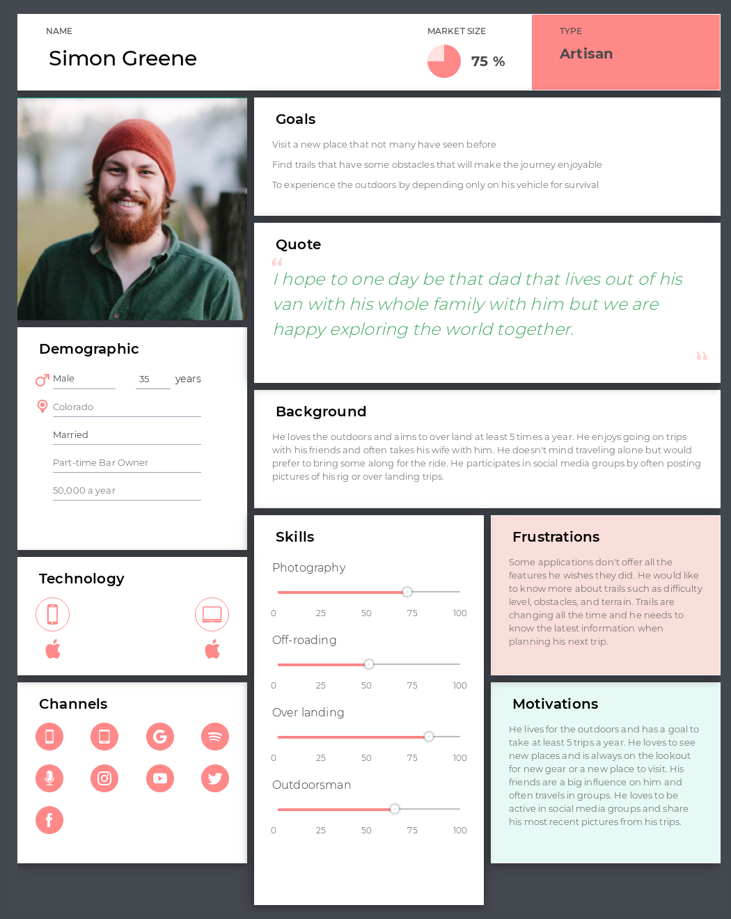 To the right, I crafted a user persona of who I believe would use an application like OVRLND.